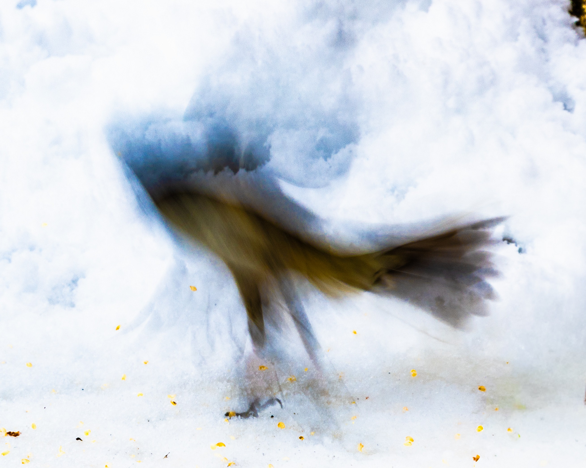 A little fun with a very slow shutter speed, cropping, and turning up the vibrance of colors in Lightroom. Perky kitty even had a bird briefly fly around the kitchen.